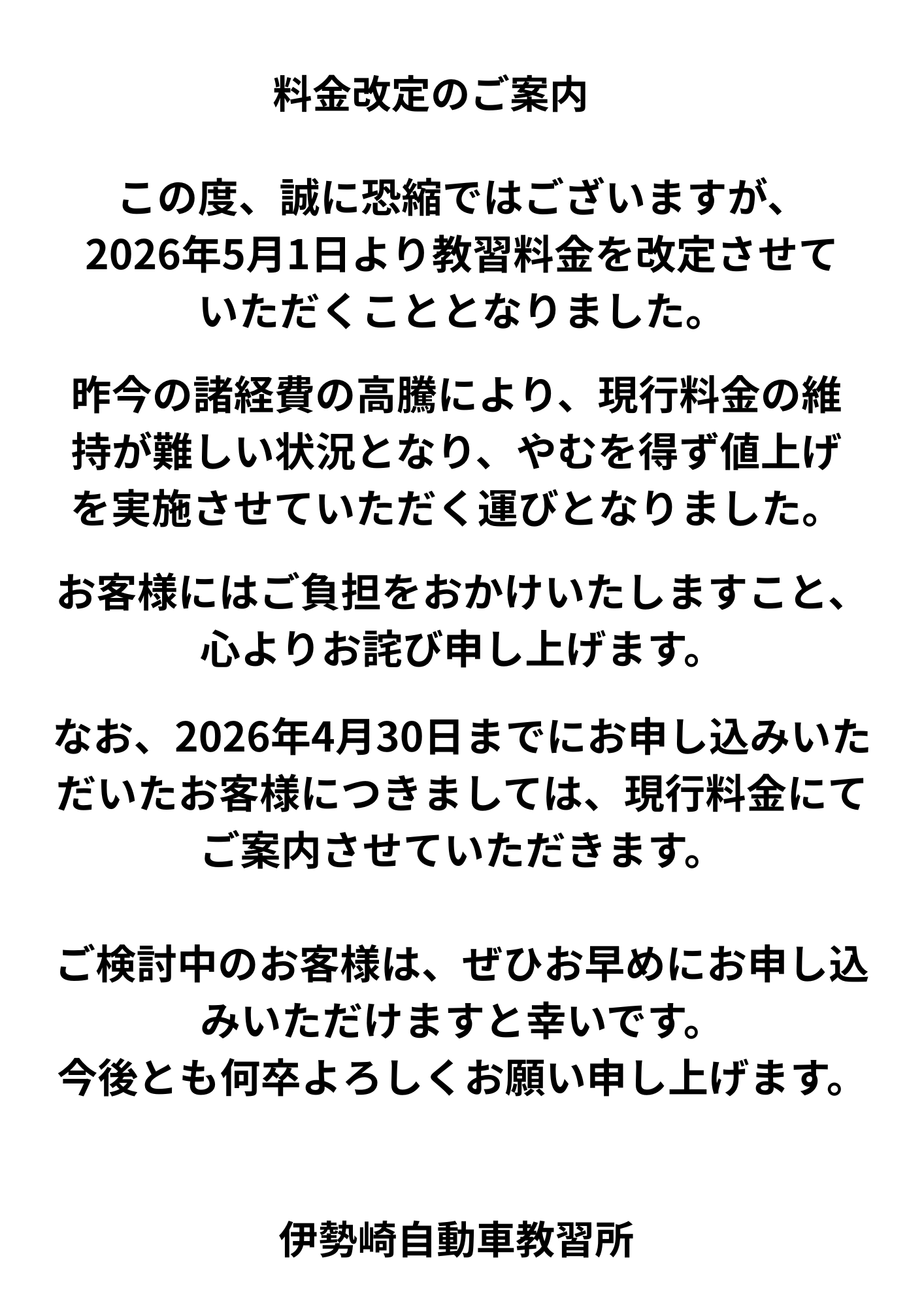 | 2026年04月1日 | 未分類 | 料金改定のご案内 |