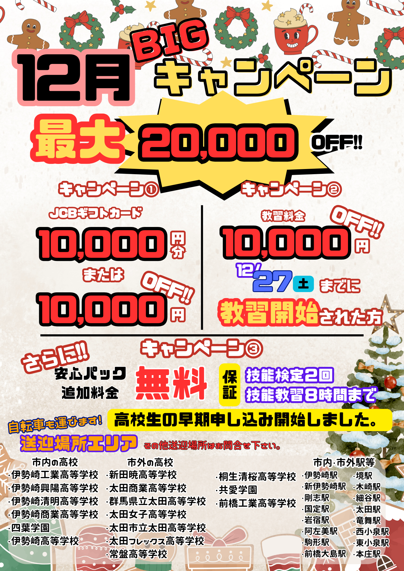 | 2025年12月1日 | キャンペーン | 12月の普通車BIGキャンペーン |